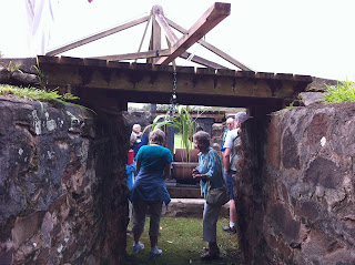 Then the old schoolbus transported us to Kalawao to see the Siloama Church and St. Philomena Church, the site of the old Baldwin Home for Boys and the remains of the U.S Leprosy Investigation Station. We marveled at Father Damien’s building skills, and noted the spit holes in the floor so churchgoers could get rid of their mucus while worshipping. Next to the St. Philomena Church are even more gravesites. Many of the headstones were from 1926-1929 and many more graves lie unmarked.